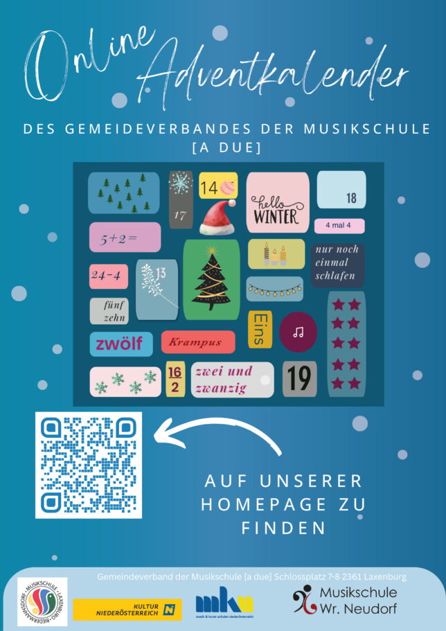 Von 1. bis 24. Dezember öffnet sich jeden Tag ein neues musikalisches Türchen, mit Beiträgen aus Wr. Neudorf, Laxenburg und Biedermannsdorf!
